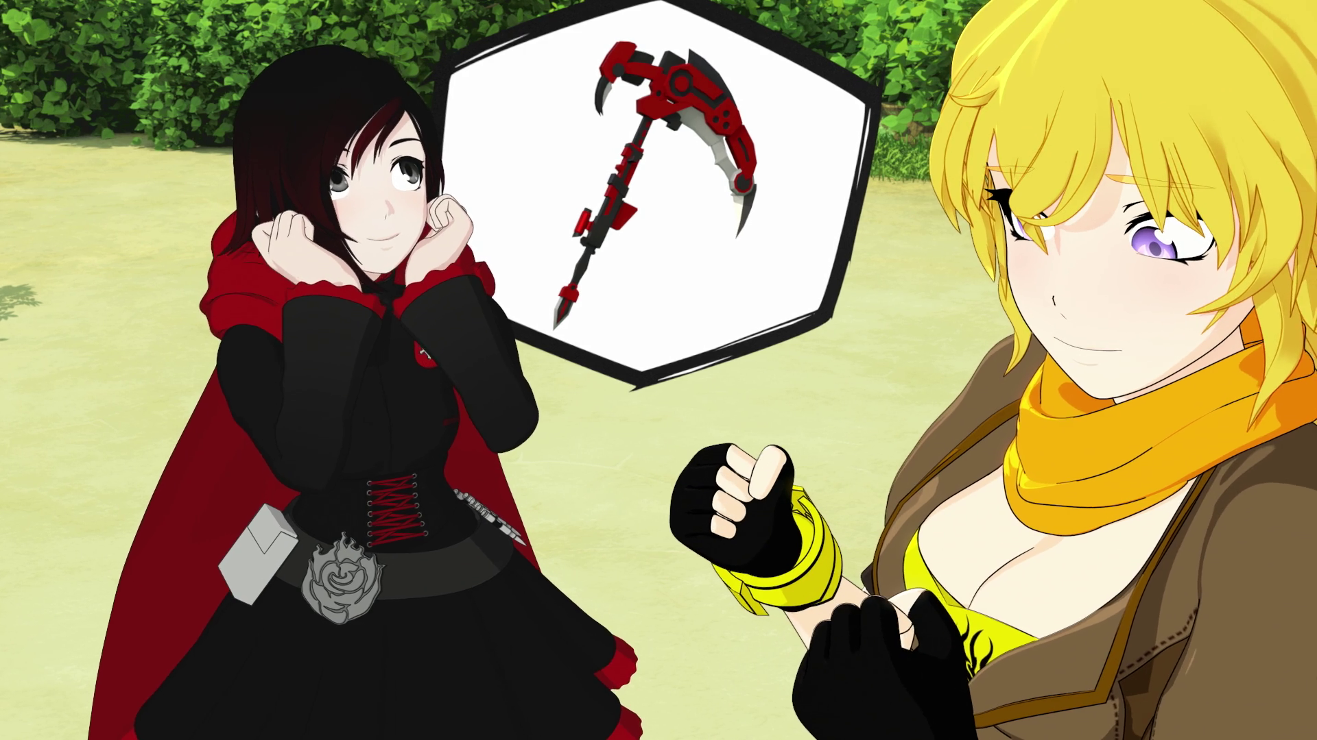 Ruby: Okay Yang it just won't feel the same without my sythe but lets go.